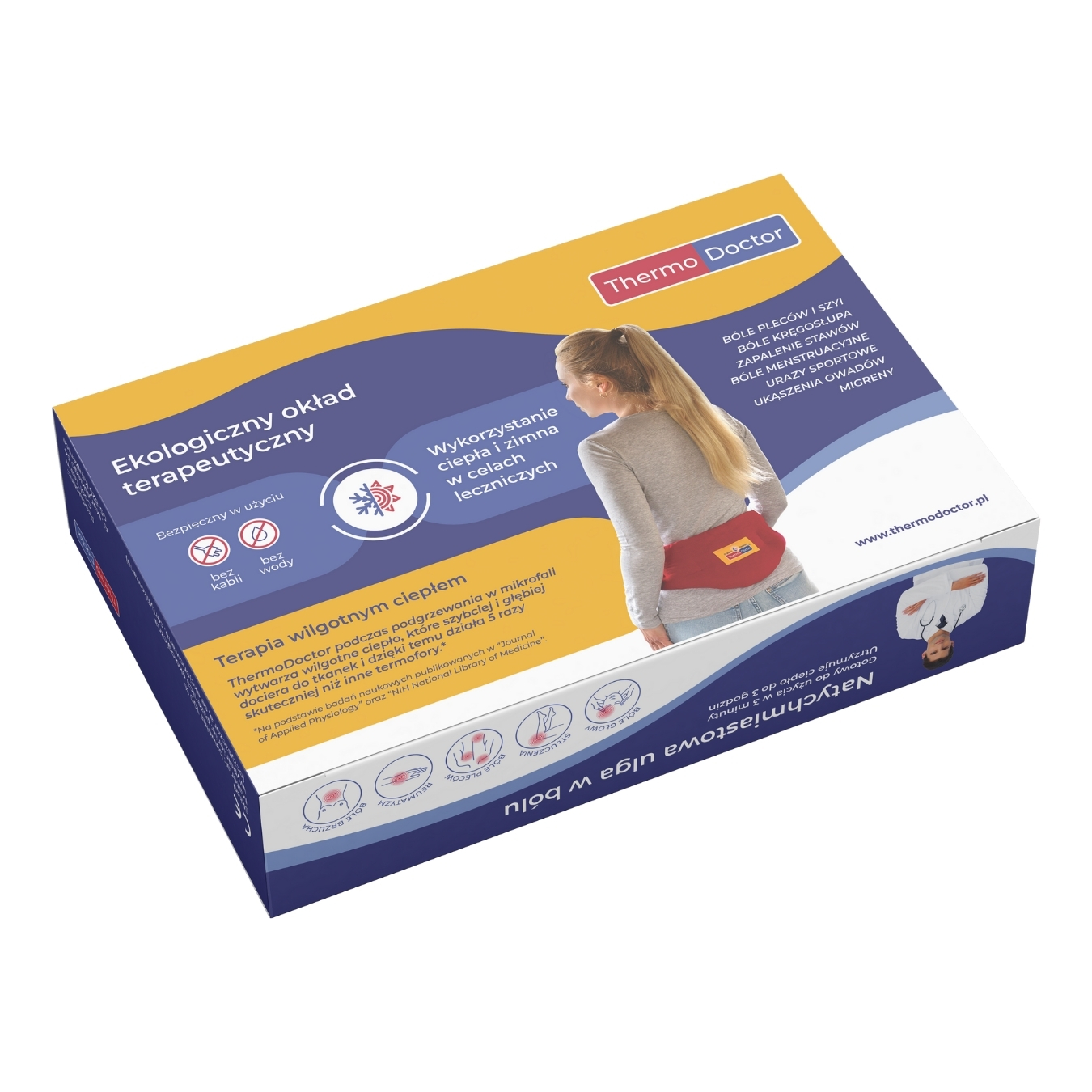 ThermoDoctor podczas podgrzewania w mikrofali wytwarza wilgotne ciepło, które szybciej i głębiej dociera do tkanek i dzięki temu działa 5 razy skuteczniej* niż inne termofory.