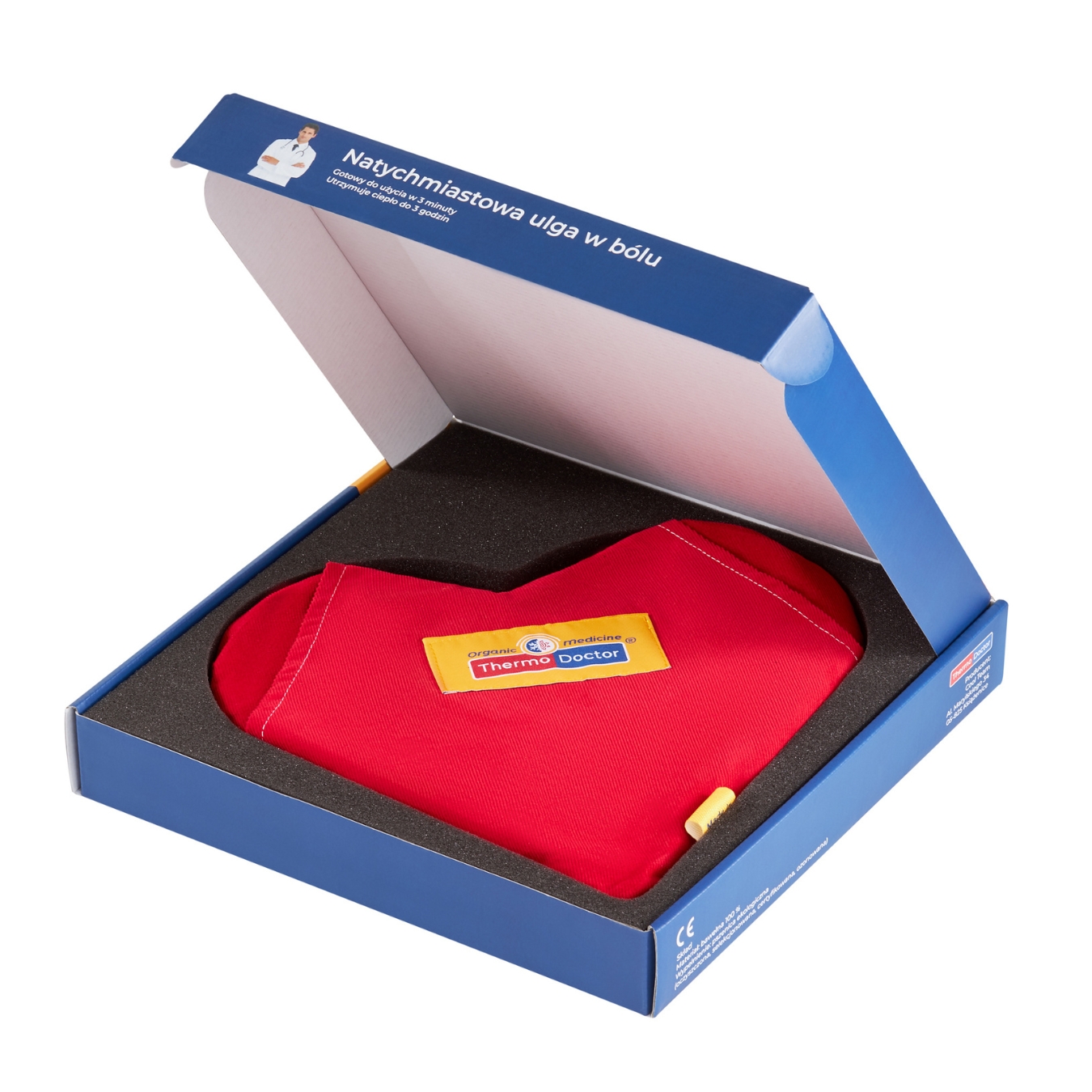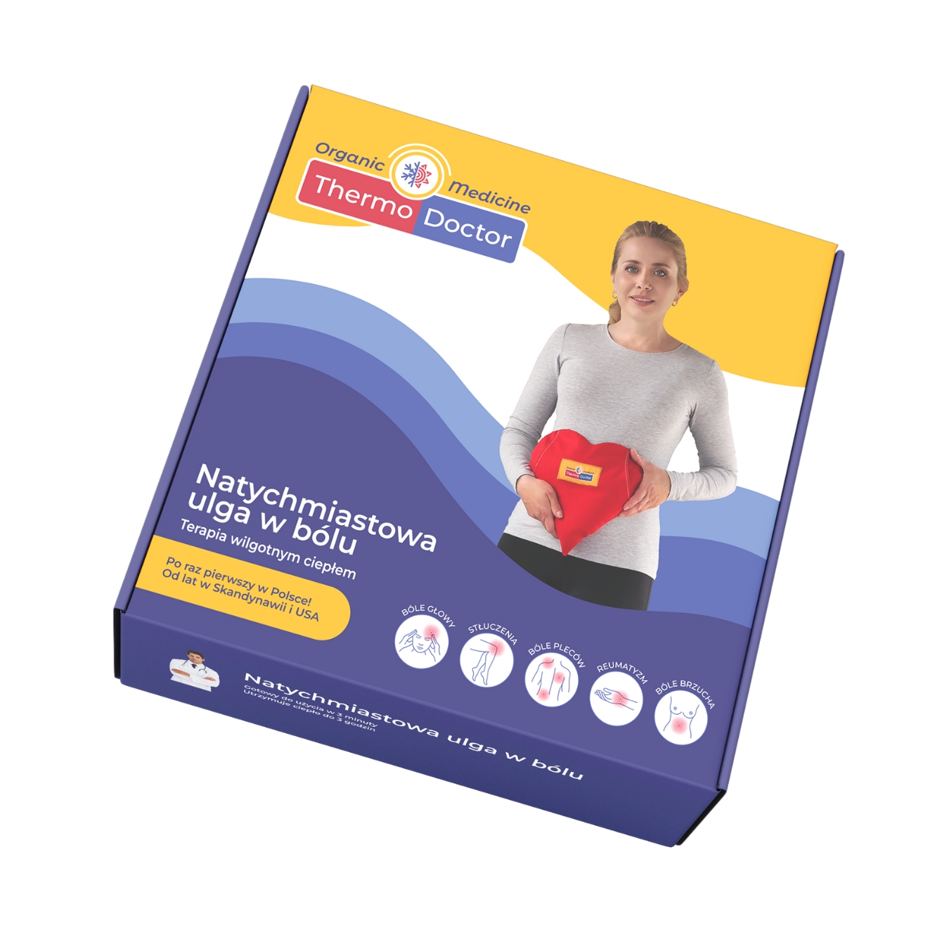 ThermoDoctor podczas podgrzewania w mikrofali wytwarza wilgotne ciepło, które szybciej i głębiej dociera do tkanek i dzięki temu działa 5 razy skuteczniej* niż inne termofory.